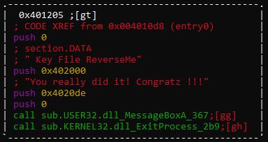 There is a string which says “You really did it! Congratz !!!” Let’s find out where this is getting executed. We can go to its respective assembly code by giving a double-click on the string, as shown below.
