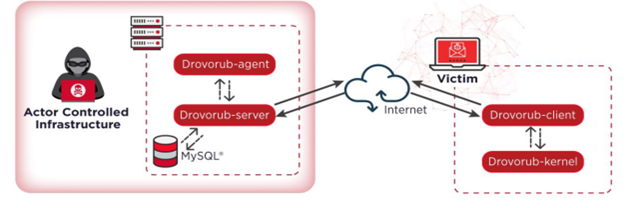 Figure 1: Drovorub high-level diagram with the malware components.