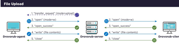 Drovorub-client and agent share some features, such as file download and upload: