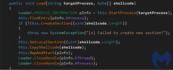 According to Malwarebytes, “the Loader class is responsible for injecting shellcode into the target process by making Windows API calls”.