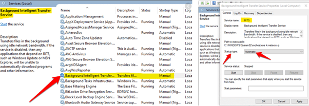 Figure 1: BITS service and its configuration (automatic mode).