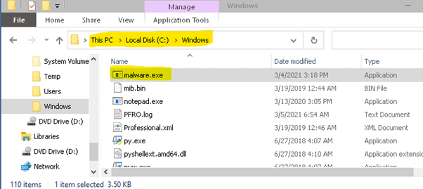 Figure 3: Malicious file downloaded into the C:\windows folder.