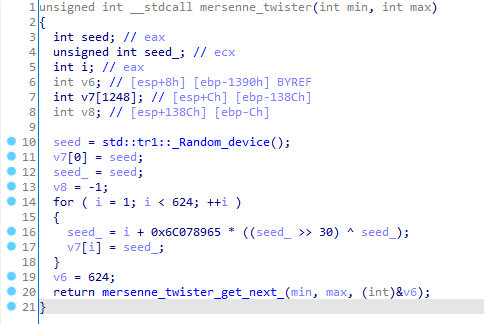 The ransomware is written in C++ and the files are encrypted with a combination of AES-256 in ECB mode and RSA-2048. The ransomware uses Mersenne Twister as a source of randomness, but unfortunately for the victims, the RNG is reseeded every time new data is consumed. The combination of ECB and AES is not semantically secure, which means the patterns of the original clear data are preserved upon encryption.