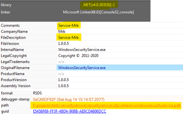 Figure 3: Mrb string and PDB path found inside the binary details.