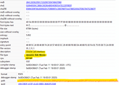 Figure 1: Details of the malicious oci.dll file (pingback malware).