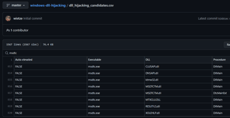 Figure 2: List of possible candidates many times used for DLL hijacking.