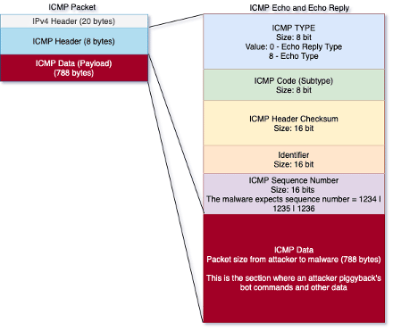 Figure 5: ICMP packet. The size of the ICMP data sent by the attacker is always 788 bytes (source).