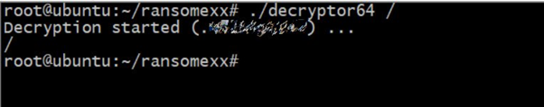 Figure 12: Execution of the RansomExx ransomware in a Linux machine.