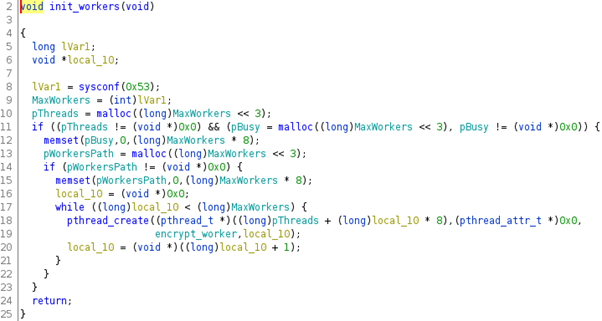 Figure 7: RansomExx - init_workers() pseudo-code.