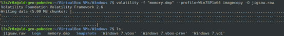 We could have worked with the .dump file but wanted to create a .raw file just in case we needed to work with more tools. The command we used to do this is as shown below: