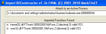 Now you have to rebuild imports using an ImpRec (Figure 10), launch the tool and select the running process (malware.exe).