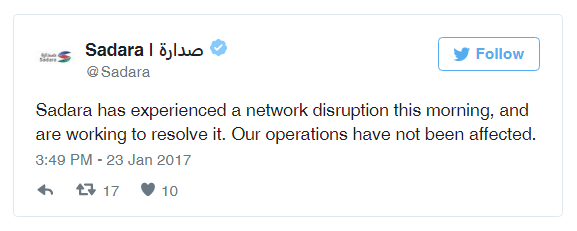 The Sadara Chemical Co, a joint venture firm owned by Saudi Aramco and Dow Chemical, confirmed it had suffered a network disruption last week, the oil company had stopped all services related to the network.