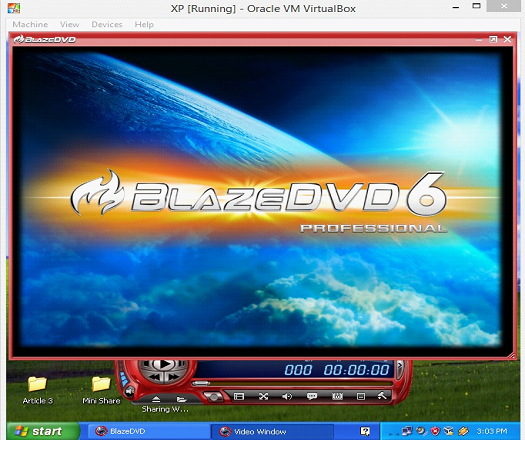 As can be seen in the above screen shot, The Blaze DVD player is running perfectly on the windows XP machine, which is Machine A.