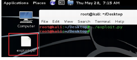 As we can see above, we have written a simple Python script which is generating exploit.plf file with 1000 A's. After running the script, we can see that the exploit.plf file has been created in the same folder.