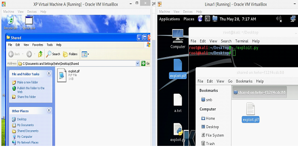 As we are working on the local exploit, so we will have to share the exploit.plf file with the Machine A. There are many ways to share the files with the virtual machine. In our scenario, we have shared Machine A folder with the Machine B.
