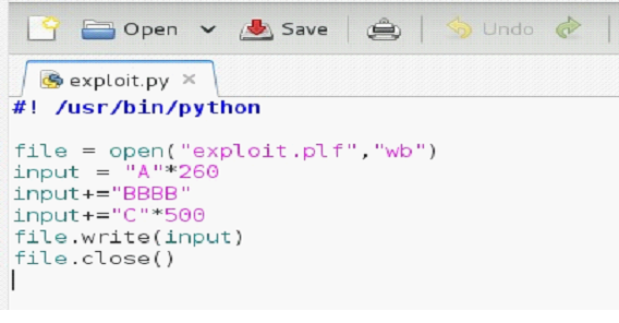 We can see in the above screen shot that the exploit.plf file has A's, B's and C's exactly the way we have given in the Python script.