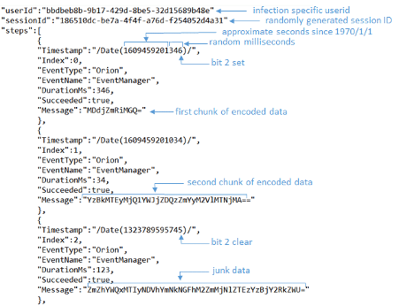 Figure 9: Structure of the POST request used by SUNBURST backdoor to communicate with its C2 and exfiltrate data (source).