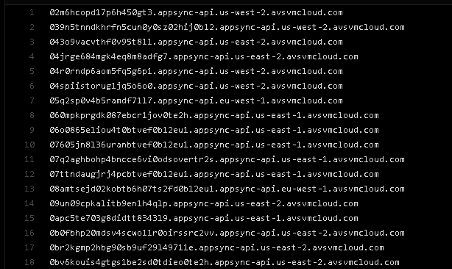 Some examples of FQDNs queried by SUNBURST can be observed below and are also available on GitHub: