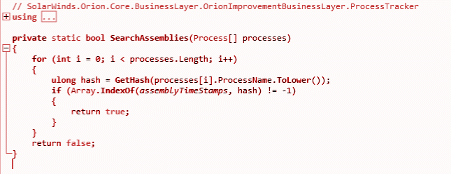 Figure 4: Block of code responsible for detecting target process names during the SUNBURST execution.