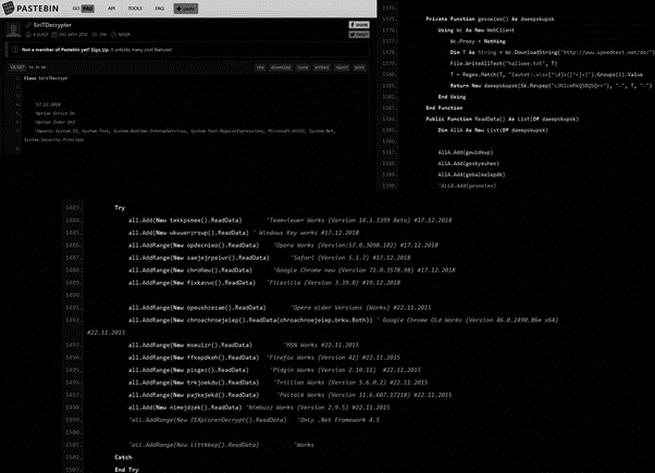 Although this piece of malware is recent, it appears to have evolved from a stealer whose source code leaked onto Pastebin at the end of 2018. Figure 8 presents part of the leaked source code and similarities with the Troystealer code after reversing it.