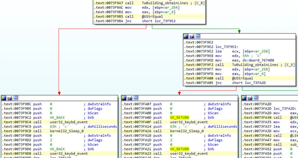 Figure 8: Keyboard keystrokes accessed via keybd_event API