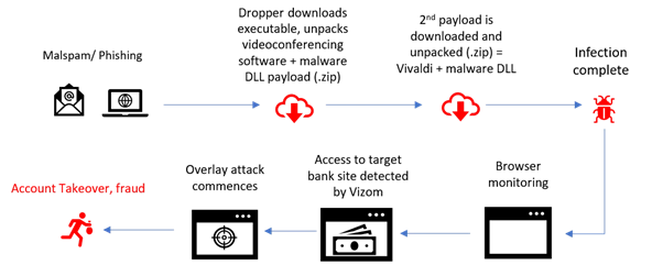 Figure 1: Vizom’s infection chain and fraud method (source)