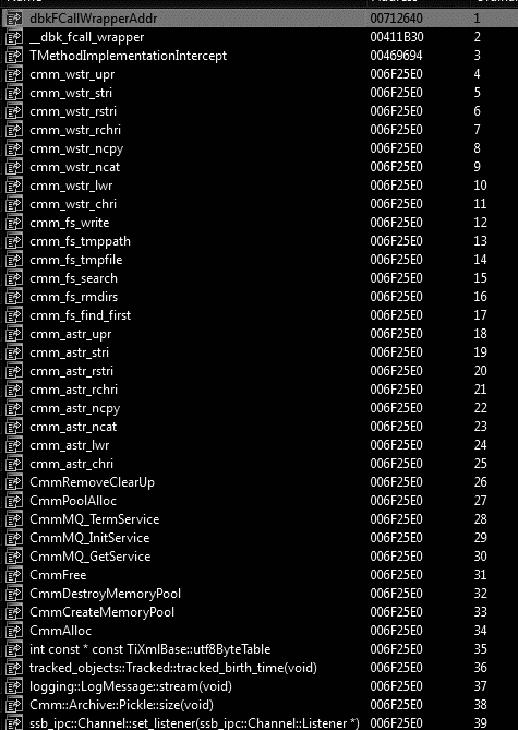 Figure 3: Cmmlib.dll export list showing the same address for all functions