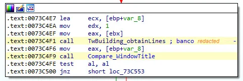The malware is monitoring the browser’s activity and obtains the title of the browser window comparing it with the malicious strings hardcoded inside the binary. If the obtained string is one of the target banking portals hardcoded, the overlay process starts. This comparison happens continually in a loop.