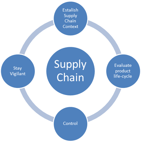 Establishing context for the supply chain followed up by evaluating product life cycle and controlling/treating risks. Organizations should always be vigilant to look out for new cyber risks, especially in short product life cycles. The best way to be vigilant is to establish a management process to review supply chain cyber risks on a continuous basis and keep working to enhance the supply chain process. A secured supply chain can reduce the cybersecurity burden on the network operators.