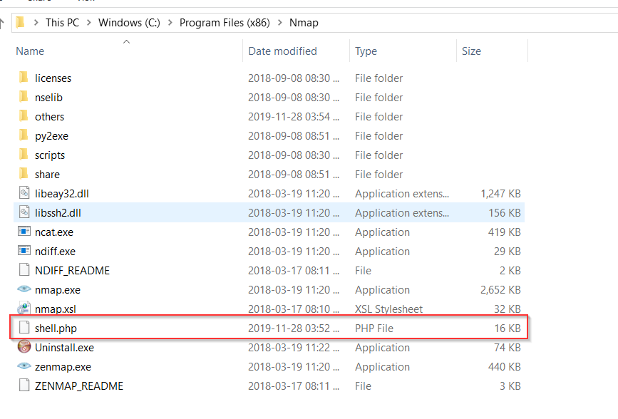 In the other case, as shown in the screenshot below, shell.php (which triggers remote code execution) is in the parent directory, which is a big alert to an organization. Remove the file immediately and dig more to find similar structured files.