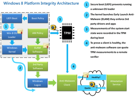 These types of attacks can destroy the integrity of one or more platforms across an organization. It is crucial that when the user login prompt appears, the system is trusted and safe for sensitive information and critical business processes. This starts by establishing a root of trust, and the TPM is its support.