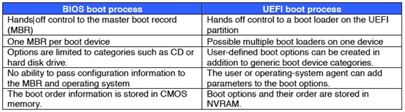 - Conventional BIOS v. the UEFI