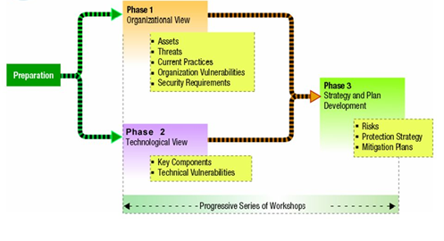 Using the OCTAVE model, organizations move through three phases. First, all of the assets involved in storing, processing and transferring information across the organization as well as the associated datasets are captured, and attributes are assigned based on the type and sensitivity of the data. Next, the specific technical components and their associated vulnerabilities are documented. Finally, the information from Phase 1 and Phase 2 are evaluated, a security strategy and required resources are developed and identified and decisions to address or take action on them can be made by organizational leadership.