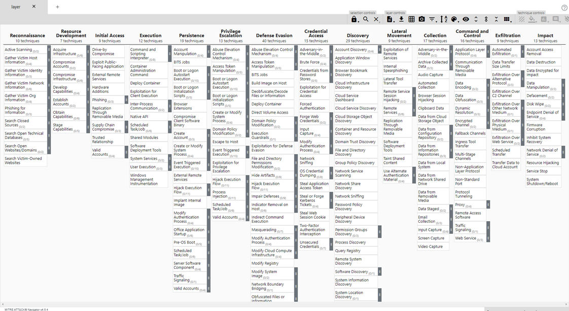 As you can see, the MITRE ATT&CK KB covers a lot of data. Fortunately, we can use some of the built-in tools to narrow down our search for what we need at this particular moment.