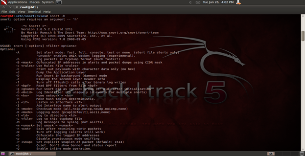 The latest version of the application can be downloaded from http://www.snort.org/snort-downloads/. Figure 1 shows a standard example of the Snort interface.