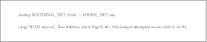 In this installment, we will look at a slightly more complex example of a Snort rule in an attempt to explain some of the various fields in the options section of a real, live Snort rule. We will use a rule that focuses its detection on the TCP and IP header to illustrate how these header fields can be used for intrusion detection. This particular rule comes from Sourcefire's VRT rules and illustrates more of the complexities of Snort rules, hopefully without overwhelming the novice. You can find this rule among the scan-rules in your Snort rules directory, which usually resides at /etc/snort/rules.