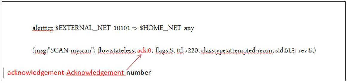 Nmap and other port scanners are capable of sending scanning packets that have the acknowledgement number set to zero (0). By looking for packets with an acknowledgement or ack field set to zero, we are looking for packets that aren't RFC compliant and are probably coming from a scanning program like Nmap.
