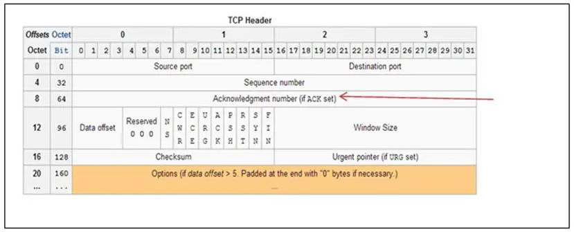 The next field after the flow is ack. It's important not to confuse this with theTCP flag ACK. Here we are looking at the acknowledgement number that is sent back by the TCP packet recipient to the sender. This is how the TCP protocol can be certain that the packet was received. If the sender does not receive the acknowledgement number of the packet, the packet is then resent.