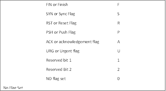 An example might be a packet with both a SYN and FIN flag set (this would both open and close a connection). The flag keyword can be very useful in detecting scanning or reconnaissance activities on your network. The following table provides the arguments of the flags keyword.