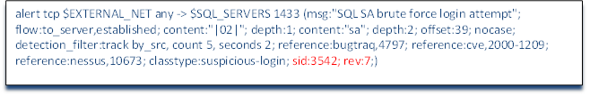 Lastly, this rule has Snort ID of 3542 and is on revision 7.