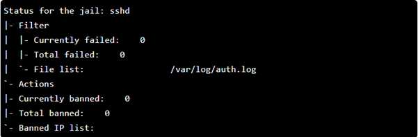 We can also view more information on the configured jails. The following is the command used to probe configured jails.