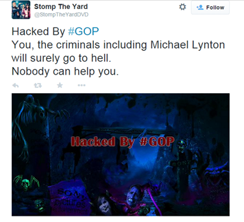 A thread started on the Reddit social news website just after the cyber attack announced that every computer in the network was shut down due to a hack. The thread also reported an image that was displayed on all the computers in the corporate network. The picture was reading that the company was "Hacked" by the #GOP team, also known as Guardians of Peace.
