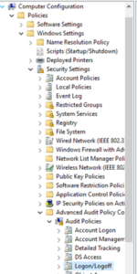 Once the GPO has come up, we'll want to navigate downwards to "Computer Configuration, Policies, Windows Settings, Security Settings, Advanced Audit Policy Configuration, Audit Policies, Logon/Logoff".