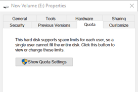 Disk quotas in the context of Windows 10, and by extension Windows Server, revolve around assigning users and user groups limits to how much space they can use in a given storage area. Sometimes this can mean a single physical drive like the C: drive on an individual workstation, right on up to permissions for an entire group on network-attached storage.