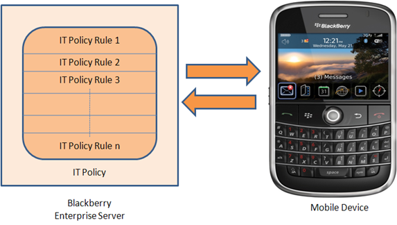 An IT policy consists of multiple IT Policy rules. How these rules are configured defines how above mentioned devices (including mobile devices) behave.