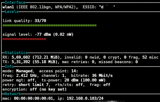 Let us examine the performance of both antennas in terms of link quality and signal levels. For the internal antenna, both the link quality and the signal level were extremely poor [Figure 4].