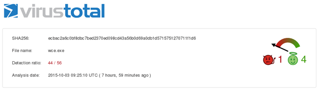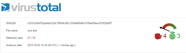 Before we use Hyperion, let's scan the 32 bit version of wce.exe file through virustotal.com first.